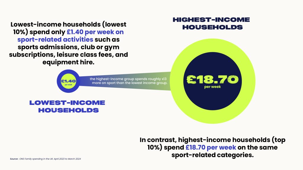 Analysis of the latest Family Spending in the UK survey shows a significant gap in weekly spending on sport and physical activity between the least and most affluent households.