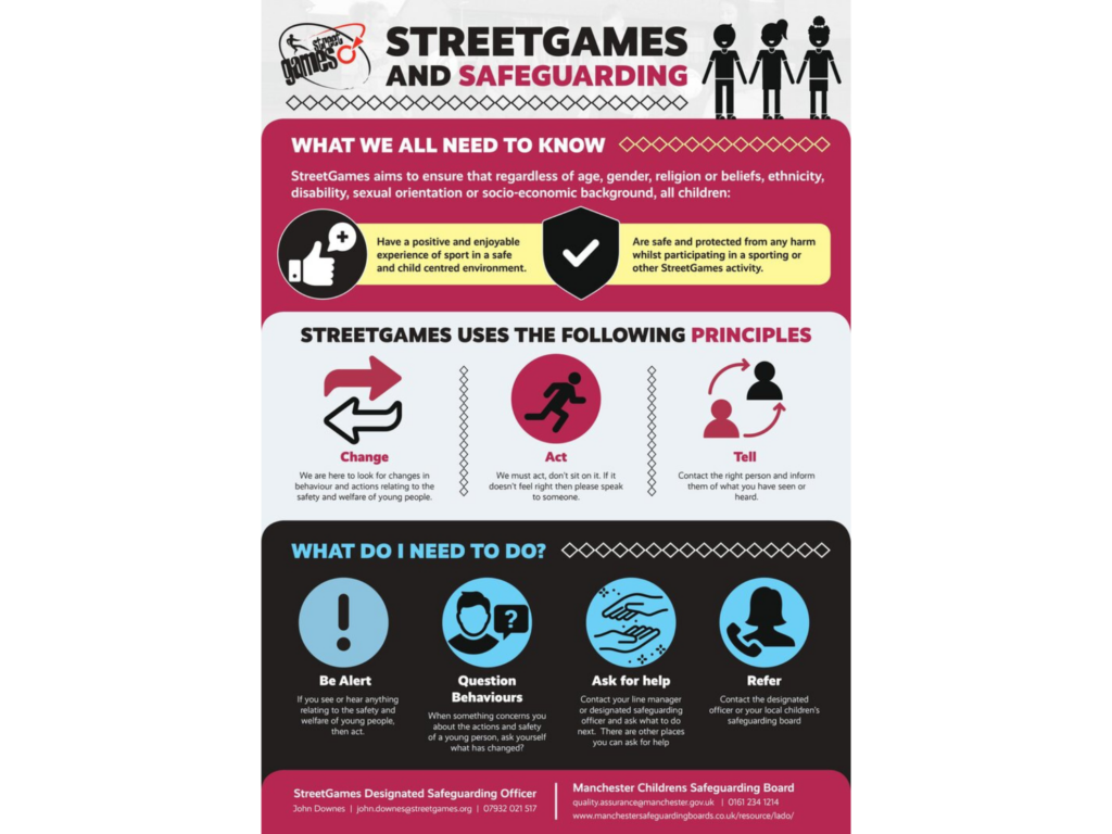 StreetGames has a legal and moral responsibility to put in place procedures that provide a duty of care of all children and young people, and to safeguard their wellbeing and protect them from abuse or poor practice on any grounds.